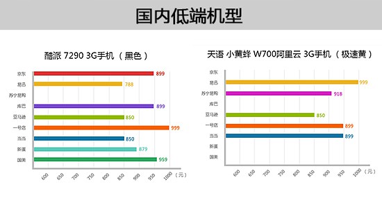 低端机型“酷派 8150”的最低价呈此刻易讯,达当月最低价585元,同时低于双十一价638元。