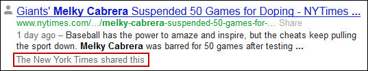 这点可以很清嚣张的在Google的SERP页面上看到改变,一般我们的SERP只有问题以及描述,可是Google推出Google+后我们可以发此刻其的SERP页面的内容中多了一些注释。如下图所示,我们可以看到在相关的搜索信息后有一个分享多该页面的记实,这一分享记实可以使某一小我或者是某一个品牌。而这一些注释的信息就是来自Google+。