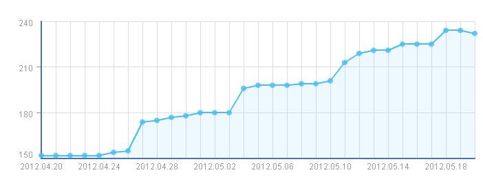 令人意外的是网站在5月25日(礼拜五)时又年夜头呈现被K现象,恢复到原本只有9页的收录;在5月26日更呈现了只收录首页的情形,令我担忧是否是前期网站不是被恢复正常收复,只是百度的调整引起。担忧了两天之后,在5月27日,当再次用工具查看网站情形时,发现又年夜头呈现一礼拜前的收录页数,原本是百度的调整导致,还让我担忧前期的全力空费要重头再来。