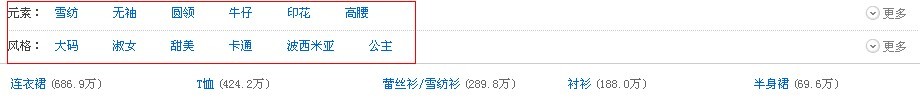 在宝物排序傍边,可以看到,连衣裙占有了前三位的位置,而且占了首页年夜年夜都的位置。而连衣裙恰是在搜女装这个关头辞书时辰出淘宝列出类目傍边数目最多的。
