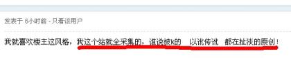 “我这个站就全采集的,谁说(采集复制网站就必然)被k的,耳食之言,都在扯淡的原创”,有人以自己复制采集、网站没被百度K站的例子现身说法;同时也有人喊冤叫屈,说自己网站完全都是原创,结不美观竟然被百度K了,语气傍边尽是愤愤不服。