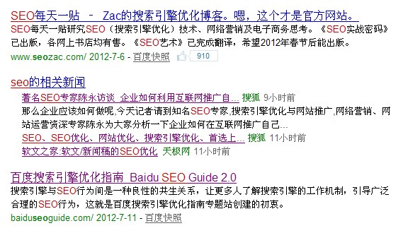 巨匠搜索“seo”,在首页上因为百度的阿拉丁法例首页上有五个百度自己的产物链接,百度seo建议,百度百科,百度辞书,百度贴吧和百度新闻源,而最轻易操作生意链接行为的就是新闻源软文链接,昨天晚上我不雅察看了下百度关于“seo”的新闻源举荐有三条,下面是截图: