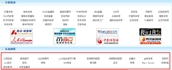 年夜门户网站的权重是出格高的,出格是以资讯为首要网站内容的门户网站其更轻易获得搜索引擎新闻源的天资。这类的网站好比四年夜门户,前面第一个软案牍例琅缦沔就有搜狐和天极网两个年夜的新闻源门户,试想而知,这两个新闻源在友情链接部门给你的网站投票,那么对于你网站的影响会有多年夜,当然这些网站也是不屑于给你链接的。当然也有一些门户站在买链接,而且卖得风风火火,其一一个巨匠斗劲熟悉的网站可能就是千龙网。下面看看千龙网体育频道的友链模块,其中红框部门显明是不相关的链接,巨匠如不美观感乐趣也可以查看其源代码,我这里查看是没有插手nofollow标签的。