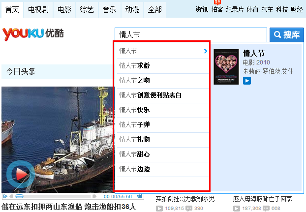 作为我们的视频,方针的用户就是网平易近,而我们所需要体味的就是网平易近的视频搜索习惯。这点也是为什媚暌古酷之前为何死力要成长搜酷的原因。而作为后起之秀百度平台下的奇艺网也不甘示弱,推出了SWS的运营模式,即连系视频搜索、视频不美旁观以及视频的分享。那么既然搜索如斯主要,我们就需要寻找相关的关头词进行优化。对此我们在打造具有传布能力的病毒式问题时就应该借助网平易近所热搜的关头词,如斯我们的视频的曝光率将会获得年夜的晋升。如下图所示,好比我们的视频主题为情人节,我们可以在视频搜索的搜素框中打入相关的关头词,不才拉框中找出视频热搜词。