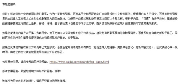 百度此次的算法更新算得上是“斗劲失踪败”的一次、更新的目的是为了净化互联网垃圾信息,结不美观把众多的正规网站、原创内容网站都给深深地误伤了,轻的可能只是降权或着删除快照、误伤较重的就是直接拔毛了,而百度只是在官方平台上发布一个所谓的“误伤投诉进口”、这真的能够真正的解决问题吗?