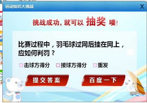 在“中国加油”这一功能中,每收集一枚徽章则有一次抽奖机缘,而在抽奖之前还有这么一个奥运常识问答环节,只要正确回覆即可抽奖,如斯再介入抽奖勾当之余还能进修相关常识,而哪怕是答错了仍是可以年夜头回覆的哦,而不会失踪去抽奖机缘,百度如斯做法,对用户而言自然很是友好。