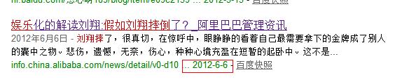 作为seoer,我们要有必然的嗅觉,对实事应该有灵敏的不雅察看力,能展望用户的一些行为,就拿刘翔事务来说,如不美观有一个网站能在很早的时辰展望到刘翔摔倒,并以此成立一个页面,那么当事务如实发生之际,获得的流量必定是数不胜数,如下图:
