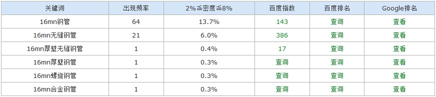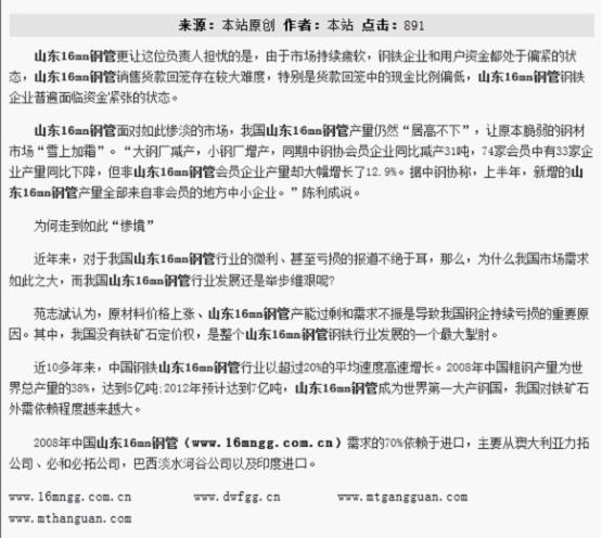 年夜上图中可以看出“16mn钢管”这个关头词呈现的频率出格高,我也当真的看过他的站内文章,确实关头词聚积过分严重,而且几乎每一次呈现的关头词全数都加粗措置过了,这种情形我们确定为优化过度了, 关头词添加需要在合理典型围之内,下图是网站内的一篇文章的截图。