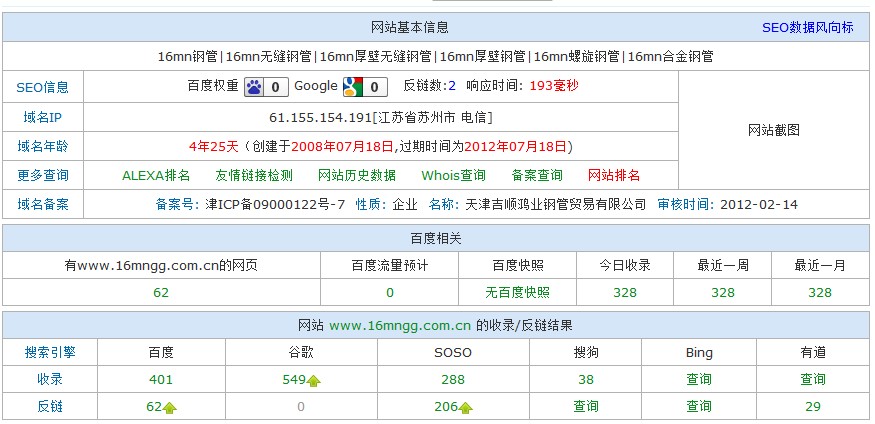 年夜上图中可以看出,网站的关头词全数都是年夜“16mn钢管”延长出来的,本意是想年夜提高“16mn钢管”关头词排名,最后的效不美观确往往是适得其反,偷鸡不成蚀把米。关头辞书添加需要自然,切勿称心聚积。其实我们无需称心聚积,百度自己是拥有分词手艺的,即使关头词只呈现一次,百度也会经由过水平词手艺成得后面的关头词。