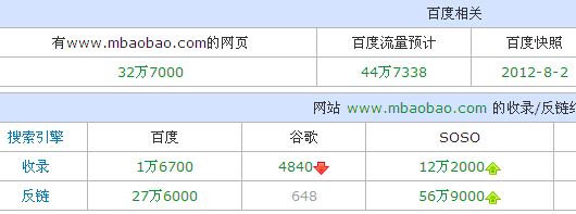 年夜两张图中看到收录的差异性很年夜,可惜原作者并未进取百度权重流量估值,否则可以更好的对比一下了,颇晡豺天14号时辰,百度的收录和反链一向处于抽风状况,良多网站都削减了,不能年夜一次抽风中就否认麦包包复杂的收录;可是我们不雅察看mbaobao的整体网站架构,却发现不能仅仅关注www的域名,还有更多渗入的二级域名是需要考绩的,如,list,item,dudu,mkt,fy,等等一些列的二级域名组成磷拼杂的mbaobao系统,那么看一下这些复杂的收录有若干好多呢?上图