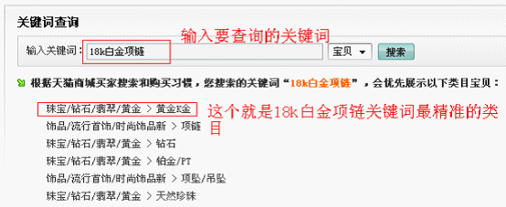 近似于18k白金项链,这样的关头词,淘宝的新手会误为,精准类目就是项链。如不美观卖18k白金项链的店东,将宝物归类到项链,当顾客搜索18k白金项链这个关头词时,排名会斗劲靠后。因为淘宝搜索引擎,默认这个关头词对应的最精准类目就是黄金k金这个类目。放到其他的类目,宝物就不会优先展示。