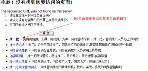 网站处事器响应时刻要快,打开速度也要快,7秒钟打不开的网站就会认为用户体验度很差。同时网站结构要好,最好有网站地图,蜘蛛能跟着链接爬行到所有的网页。400页面要有返回首回头回忆页的链接,否则就会把蜘蛛带进死胡同。经常搜检死链或者无效链接,让蜘蛛在你网站里行走抓取的更顺畅。