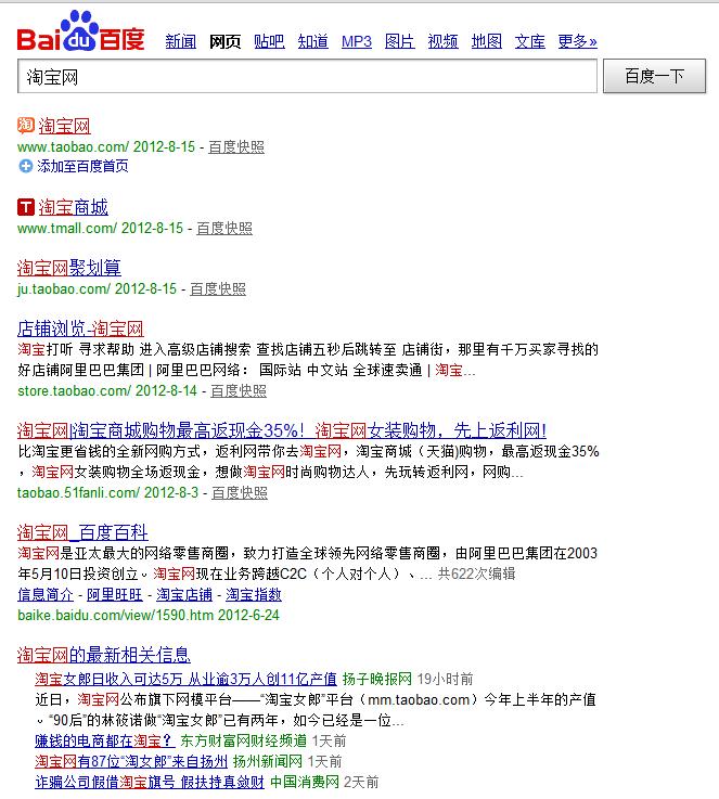 2012年8月15日是一个值得纪念的日子,除了不管线上仍是线下都吵得沸沸扬扬的京东苏宁价钱年夜战之外,还有一件事让我感受是蛮震动的,相信良多关注seo的站长都知道了,那就是麦包包在百度搜索“淘宝”、“淘宝网”的搜索结不美观中消逝踪了。