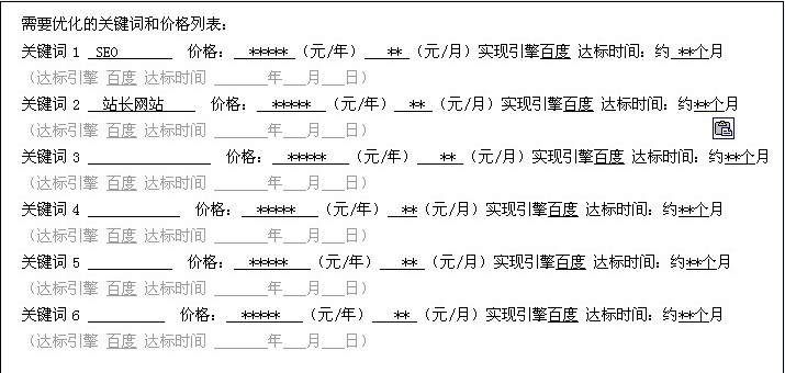 以上就是笔者关于seo关头词报价的一点点心得。顺带的说下,客户有的不会赞成按年付费,有的为了保险起见,会要求按月付费,我们在报按月付费的时辰,必然要比按年付费的单价高一些,事实下场按月付费我们也承担一些风险。按月付费一点要在报价单上具体写出月付价钱,好比下图:
