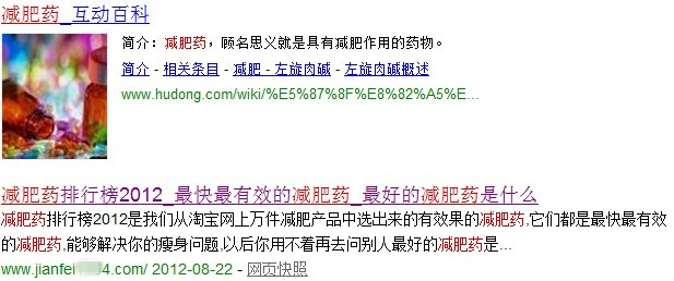 以上胀均图是在360综合搜索里搜索减肥药的结不美观,该站原本在百度里是持久连结前五的位置,然而今天不见了,综合搜索里它却占有着第一的位置,巨匠可以试着不雅察看下,在百度排名失踪了的情形下,它能在综合搜索里能耸峙不倒多长时刻。