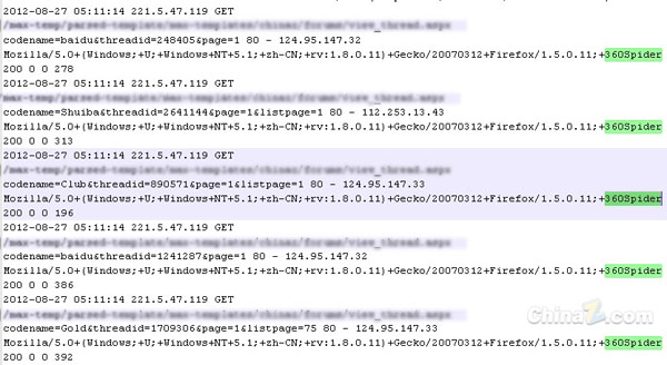 今朝,年夜360搜索官方微博得知,360搜索蜘蛛已经出炉,而且蜘蛛已经对互联网中的网站进行了爬行,截图如下。