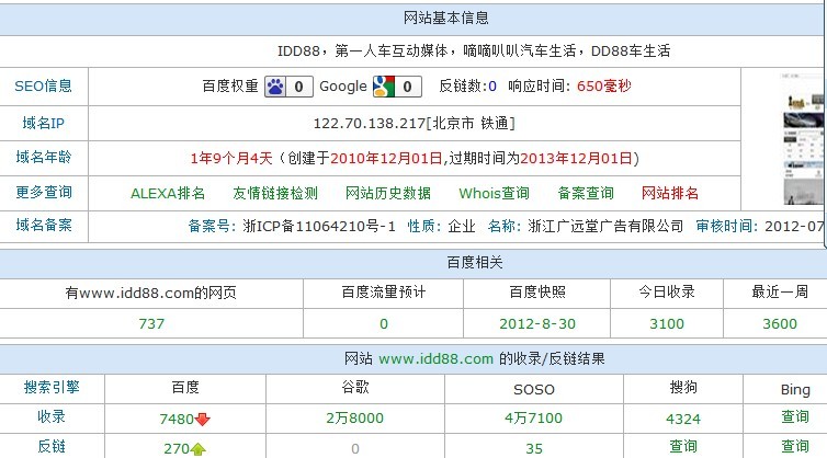 昨天有幸插手了浙江站长群,在琅缦沔听到一位站长在那埋怨,为什么自己的网站建站快要2年的时刻,为何百度权重为0,谷歌PR为0,那时我粗略的看了一些,确实存在不妥的处所,今天刚好有时刻,我将对这个老站,做一个深度的解析。