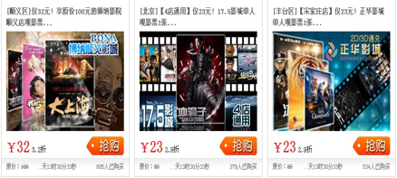 记者也在知名团购网站团购王(go.cn)看到,正如膳缦沔那位网友所言,当日(12月13日)仅团购王北京分站就推出多达19款片子团购处事,记者初略看来,每款片子团购的均跨越两百人次,年夜多在五、六百人次摆布,最多的高达三千七百人ノⅲ